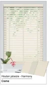 Harmoni ahşap jaluzilerin birçok avantajı vardır. Perdenin üst kısmındaki girintili şerit ile düzgün ve lüks bir görünüm elde edersiniz. Kordon freni ile perdelerinizi istediğiniz yüksekliğe çok kolay bir şekilde asın. Kenarlar çıtalarla aynı renktedir ve panjurlar UV’ye ve çizilmeye karşı dayanıklı lakeye sahiptir.