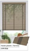 Harmony ahşap perdeler %100 ahşaptan üretilmiştir. Kordon delikleri perdenin arkasına takılır. Sonuç olarak, çıtalar birbirine mükemmel şekilde uyum sağlar ve herhangi bir ışık deliği oluşmaz. 25 mm genişliğindeki merdiven bandı endüstriyel ve lüks bir görünüm sağlar.